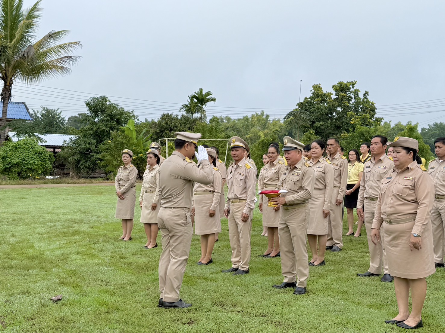 เข้าแถวเคารพธงชาติ หน้าเสาธง ณ องค์การบริหารส่วนตำบลนาขุม เพื่อร่วมใจกันสำนึกคุณ ชาติ ศาสน์ พระมหากษัตริย์ พร้อมทั้งมอบนโยบายการปฏิบัติงานให้กับพนักงาน อบต.นาขุม