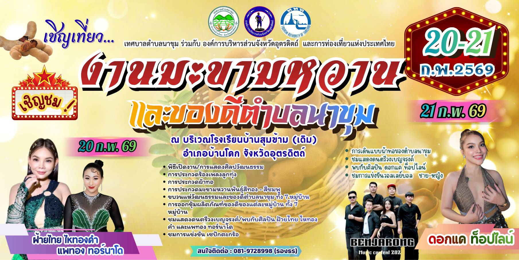 ขอเชิญชวนพี่น้องทุกท่านเที่ยวงานมะขามหวานและของดี ตำบลนาขุม ระหว่างวันที่ 20-21 กุมภาพันธ์ 2569